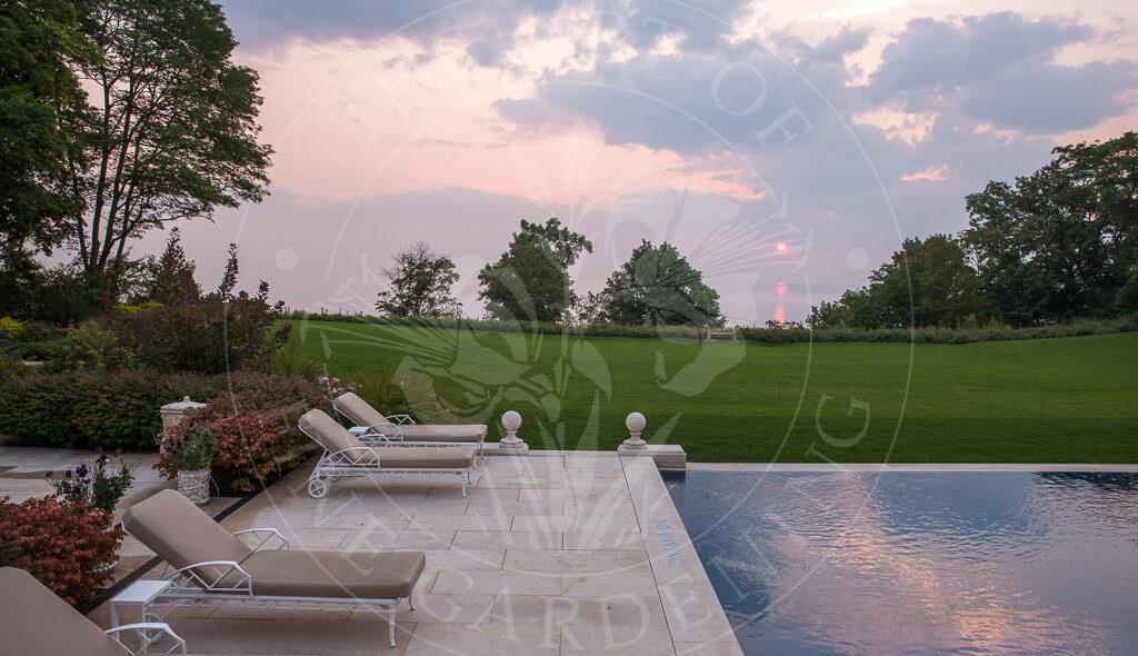 The landscape design for this new home on Lake Michigan was inspired by the client’s desire to have a classically styled French Mediterranean home and landscape.